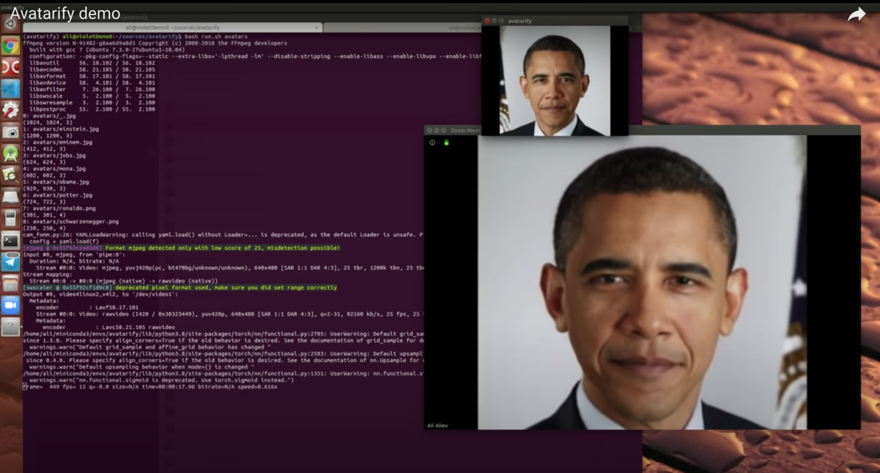 Ali Aliev ha creado el primer programa para realizar deepfakes en código abierto, es decir, al alcance de cualquiera con algunos conocimientos de programación. El programa, llamado Avatarify, permite a los usuarios realizar videollamadas con el rostro de cualquier persona, con un nivel de realismo altísimo. Hablamos de una tecnología que permite a cualquier usuario realizar una llamada de Zoom o Skype en tiempo real con el rostro del Presidente del Gobierno, del Lady Gaga o de usted mismo.